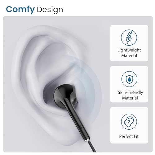 Comfy Fit Design – The earphones are crafted with soft silicone eartips and an in-ear fit design for extra comfort and more stability during long periods of listening.