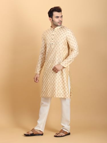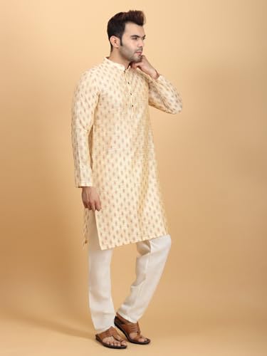 Introducing our Full Sleeves Mandarin Collar Ethnic Kurta Set for Men – the perfect ensemble for making a statement at your engagement, wedding, or any festive occasion. Crafted with precision and designed for elegance, this Cotton Kurta Set offers a blend of traditional charm and contemporary style. Whether you’re the groom, a guest, or simply looking to showcase your cultural roots with a touch of contemporary flair, this kurta set is the perfect choice for those special moments.