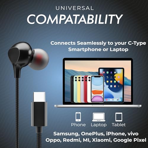 Ergonimically designed C port Earphone : These Type C earphones features Stylish body design and is Ultra light in weight. You feel very comfortable experience when you wear the earphone even using for long hours