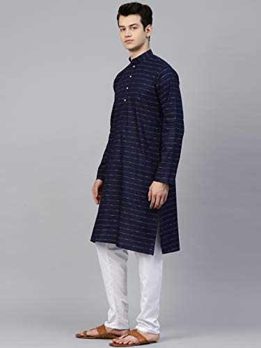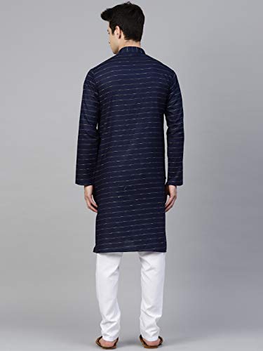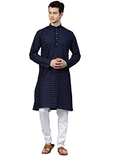 This in-style kurta set from MANQ is a must-have for any wardrobe. This cotton piece is a great option for any evening event when combined with your favourite trousers or jeans.