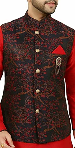 Impress everyone with your amazing fashion sense by donning this Printed Kurta Jacket set for men. Fashioned from silk blend, this is designed to provide you sheer comfort and will ensure a perfect fit. Tailored from finest fabric and fashioned with a chinese collar for a dash of style. It is a great addition to your wardrobe and will win you compliments from one and all