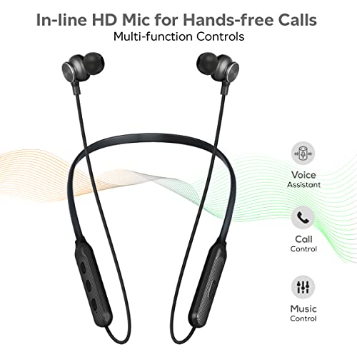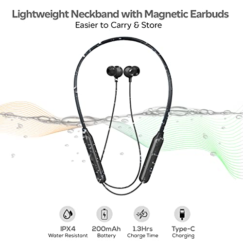 Attractive ergonomics with a lightweight sturdy built (just 26gms); Bluetooth headphone with mic comes with Bluetooth 5.2 for seamless 10mtrs connectivity, quick pairing, and broad compatibility.