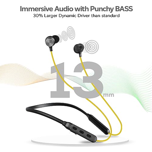 Latest & Stable Bluetooth 5.2: Tangent Duo Wireless Headphone adopts Bluetooth 5.2 technology, which delivers immersive audio for a more stable connection and stronger signal transmission. These Bluetooth earphones support wider compatibility with smartphones, tablets, laptops, MP3, etc. All-day Playtime: 200mAh Low power consumption rechargeable battery provides up to 24 hours of continuous music time with a single charge. Loud & Clear Stereo Sound with Deep Bass: 13mm dynamic drivers ensure Bluetooth wireless headphones’ amazing sound quality for extraordinary clarity and detail. Passive noise cancellation design allows you to surf music or make phone calls without any disturbance. Ideal Indoor/Outdoor Design: Provides additional flexibility, portability, and durability when moving. You never have to worry about your headphones falling off and losing. Suitable for fitness, exercise, and running. The lightweight magnetic locking buds will hang around your neck in style and comfort. IPX4 Waterproof: Featured with IPX4 waterproof levels, our wireless headphones neckband Bluetooth serves you anytime no matter whether you are in the gym, working out, running, and other sweaty exercises (not supporting swimming or shower or heavy rain. Other product specifications: 32 ohms speaker impedance, 20Hz-20kHz speaker frequency response, Type-C charging port, DC5V 1A charging input, 1.3 hours charge time, 6 months brand warranty from the date of purchase on manufacturing defects only & customer care contact details support@ptron.in/040-67138888.