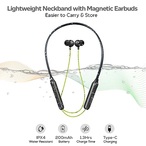 Latest & Stable Bluetooth 5.2: Tangent Duo Wireless Headphone adopts Bluetooth 5.2 technology, which delivers immersive audio for a more stable connection and stronger signal transmission. These Bluetooth earphones support wider compatibility with smartphones, tablets, laptops, MP3, etc. All-day Playtime: 200mAh Low power consumption rechargeable battery provides up to 24 hours of continuous music time with a single charge. Loud & Clear Stereo Sound with Deep Bass: 13mm dynamic drivers ensure Bluetooth wireless headphones’ amazing sound quality for extraordinary clarity and detail. Passive noise cancellation design allows you to surf music or make phone calls without any disturbance. Ideal Indoor/Outdoor Design: Provides additional flexibility, portability, and durability when moving. You never have to worry about your headphones falling off and losing. Suitable for fitness, exercise, and running. The lightweight magnetic locking buds will hang around your neck in style and comfort. IPX4 Waterproof: Featured with IPX4 waterproof levels, our wireless headphones neckband Bluetooth serves you anytime no matter whether you are in the gym, working out, running, and other sweaty exercises (not supporting swimming or shower or heavy rain. Other product specifications: 32 ohms speaker impedance, 20Hz-20kHz speaker frequency response, Type-C charging port, DC5V 1A charging input, 1.3 hours charge time, 6 months brand warranty from the date of purchase on manufacturing defects only & customer care contact details support@ptron.in/040-67138888.