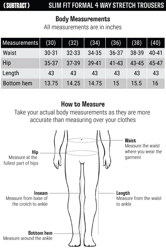 These trousers have an unaltered length of 43 inches that can be altered as per your convenience
