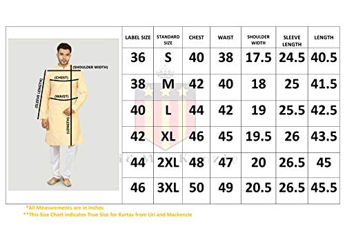 Uri and MacKenzie Men Exquisite and Charming Kurta & Pyjama, this Piece from “Uri and MacKenzie” is crafted from fine Dupion Silk fabric and is the perfect pick for wedding/festive occasion. Team this with a pair of mojaris to complete the traditional and classic look. When you want a kurta that you can wear for everyday wear or special occasions again and again, you need to be choosy about the garment that you purchase. Many kurtas for men are mass produced along assembly lines and have crooked seams or raw edges, while others shrink or fade the first time that they are washed. The Silk Kurta for Men is superior to these other kurtas, as it’s carefully made by skilled artisans out of fade-resistant, no shrink fabric. Uri and MacKenzie Men Exquisite and Charming Kurta & Pyjama, this Piece from “Uri and MacKenzie” is crafted from fine Dupion Silk fabric and is the perfect pick for wedding/festive occasion. Team this with a pair of mojaris to complete the traditional and classic look. When you want a kurta that you can wear for everyday wear or special occasions again and again, you need to be choosy about the garment that you purchase. Many kurtas for men are mass produced along assembly lines and have crooked seams or raw edges, while others shrink or fade the first time that they are washed. The Silk Kurta for Men is superior to these other kurtas, as it’s carefully made by skilled artisans out of fade-resistant, no shrink fabric. Uri and MacKenzie Men Exquisite and Charming Kurta & Pyjama, this Piece from “Uri and MacKenzie” is crafted from fine Dupion Silk fabric and is the perfect pick for wedding/festive occasion. Team this with a pair of mojaris to complete the traditional and classic look. When you want a kurta that you can wear for everyday wear or special occasions again and again, you need to be choosy about the garment that you purchase