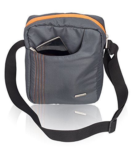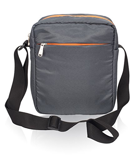 Your Travel Companion Stylish light weight Sling Bag for men to carry upto 10″ Tablet / iPad, Mobile phone, other small gadget, tickets, passport, wallet and important documents handy and secure. Made of Premium Hi-grade PU coated Polyester fabric and it comes in 9 elegant and cool color combinations to pick one which suits your personality. It has 3 sections in the Bag to keep all your essential items in organsed way. One main compartment which also includes a cushioned pocket for 10″ ipad/Tablet or other gadget which needs extra protection, Front zipper pocket is for Easy access handy Items like wallet, tickets, passport, phone etc, also you can keep your valuable documents securely in backside zipper pocket. Middle compartment is sufficiently large to accommodate other items like books or lunch box or any other item. The shoulder strap is long enough to use the bag as a cross shoulder bag and Strong metal zipper gives its premium look.Material: Outer Fabric: Durable HD coated 100% Polyester water resistance Fabric. Dimension: 9.00×11.00×3.50 (inches) [WxHxD] Compatibility: Upto 10 inch Table/ iPad